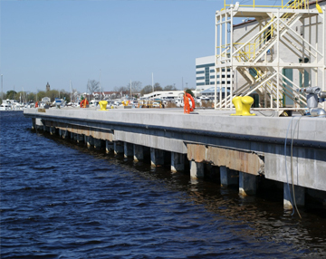 The works involved in refurbishment of offshore structure are rehabilitation of piles under water as well as in splash zone, beams and slabs of various structures such as cruise/ cargo terminal berth, tanker berths, jetty, harbours etc. Retrofitting with Micro concrete is the predominant method used for strengthening of piles, beams and columns. Gunniting is the method to rehabilitate slab and vertical areas of berth. The floor or walkways of terminals and berths are repaired using micro concrete screed. Steel structures are repaired by riveting and metalizing. We also undertake supply and fixing of fenders, bollards, mooring rings etc. Anti-Saline protective coating is provided in order to avoid further deterioration.